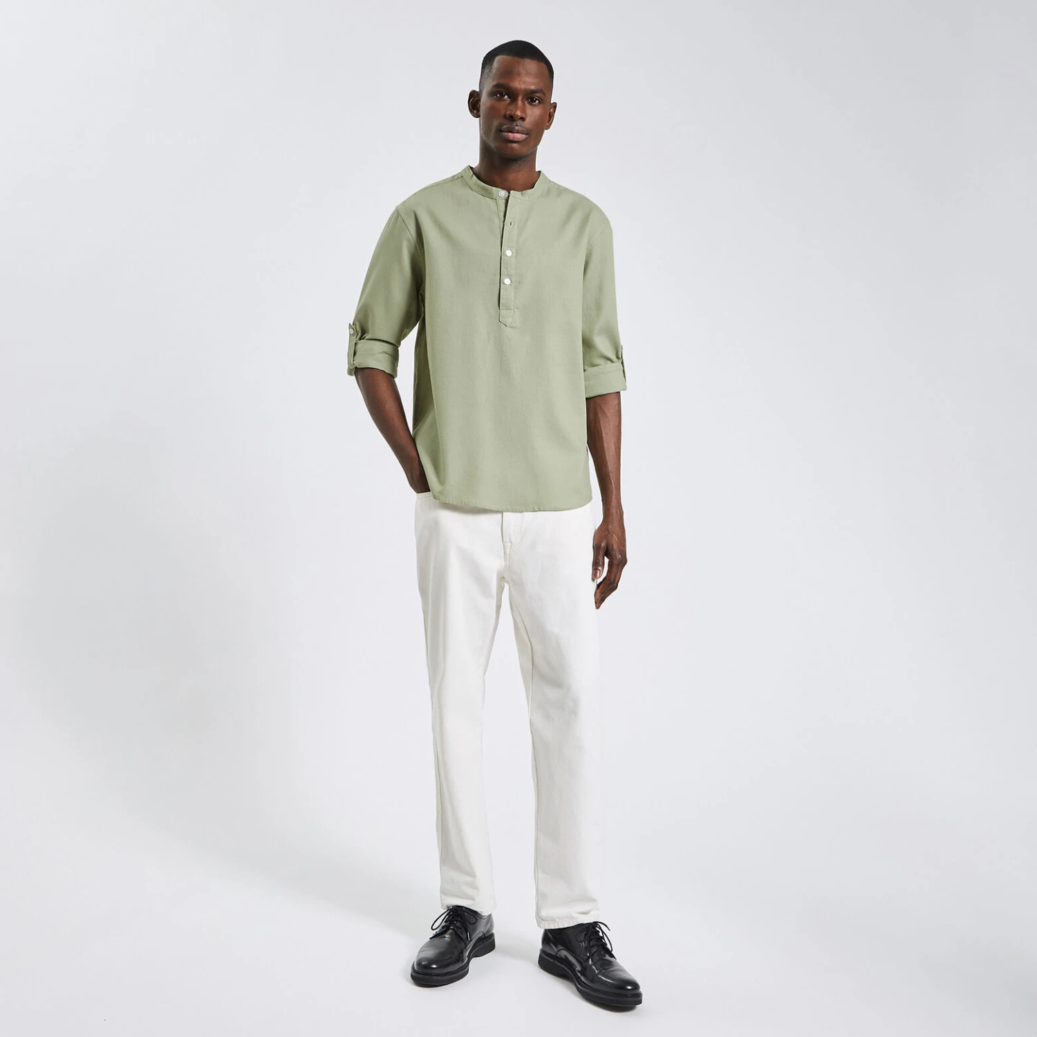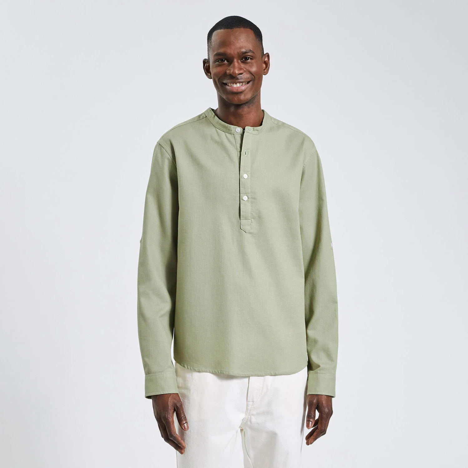 Cette belle chemise unie en nid d’abeille, éco-conçue dans une matière légère et confortable, donne un style chic mais décontracté !