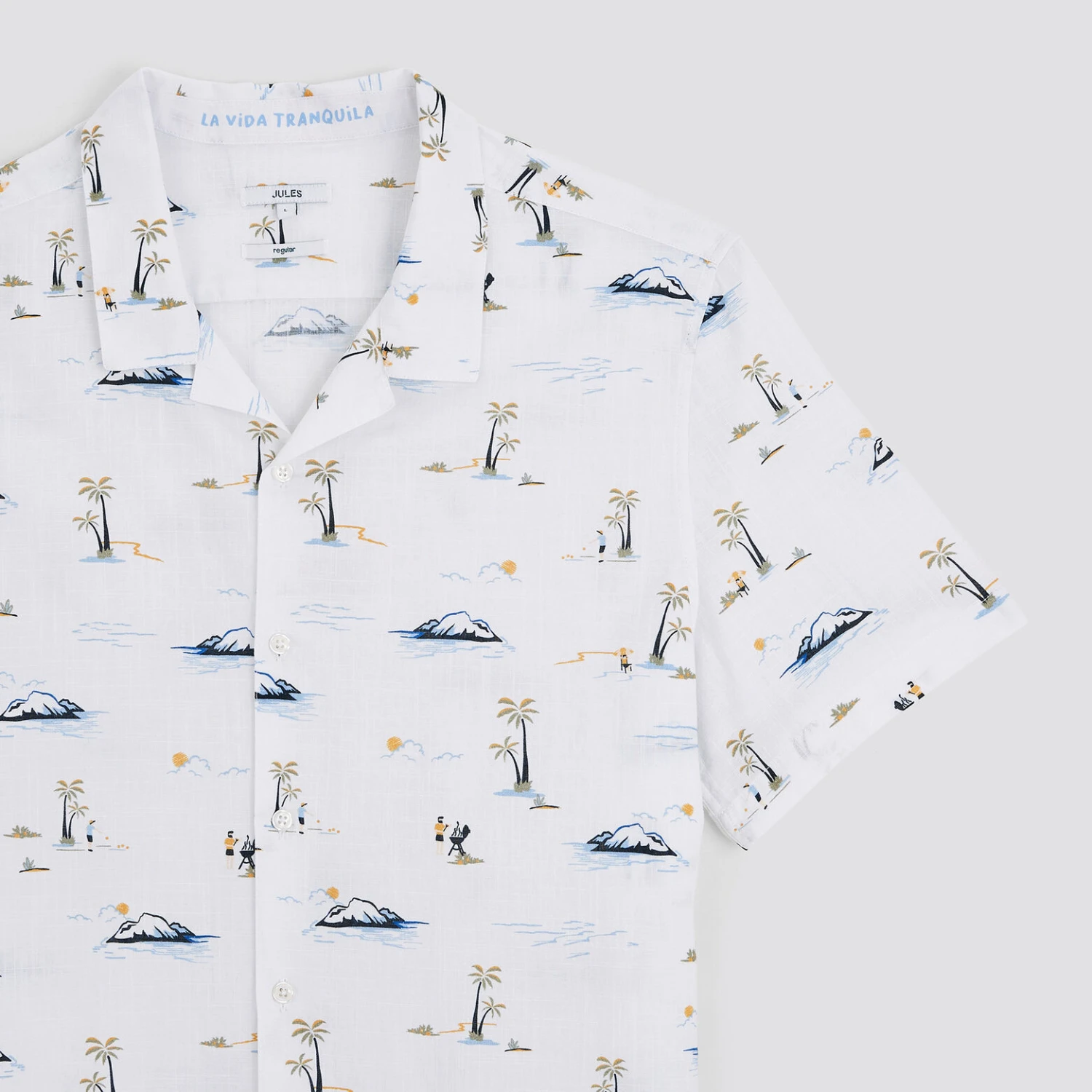 Cette chemise imprimée paysages à manches courtes, en coton flammé, est parfaite cet été. Elle s’assortit très bien avec un pantalon chino, un short ou un bermuda pour un style décontracté.