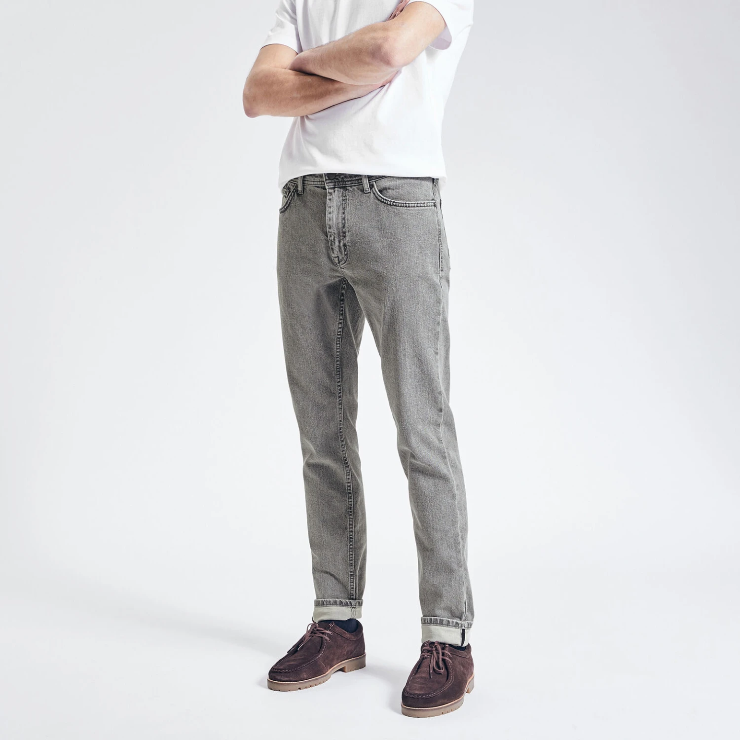- Coupe slim, étroit sur la cuisse et sur toute la jambe