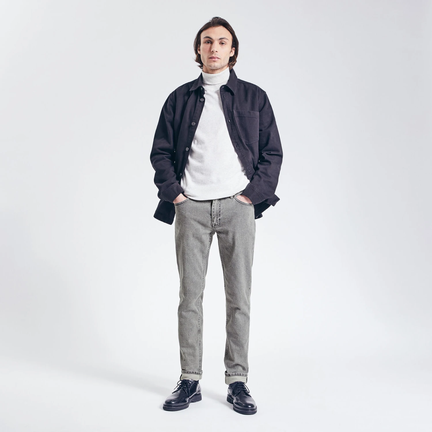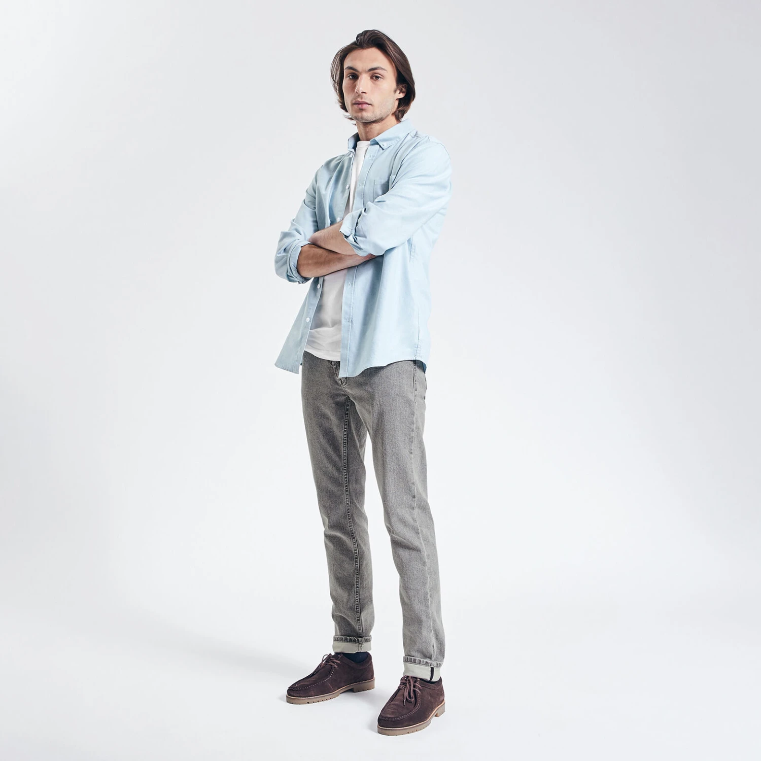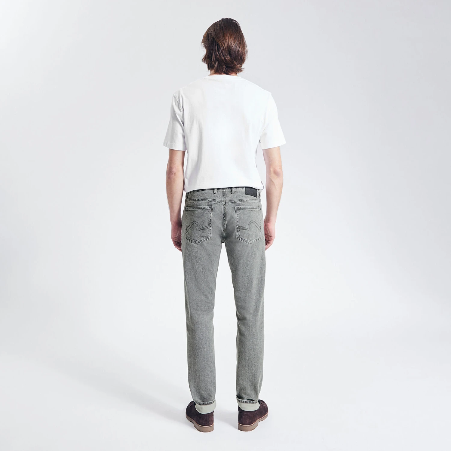 Ce pantalon Clay Dye est composé avec une teinture à l’argile : cette technique économise 72% d’eau pendant la phase de teinture.Umberto mesure 1m88 et porte une taille 40.