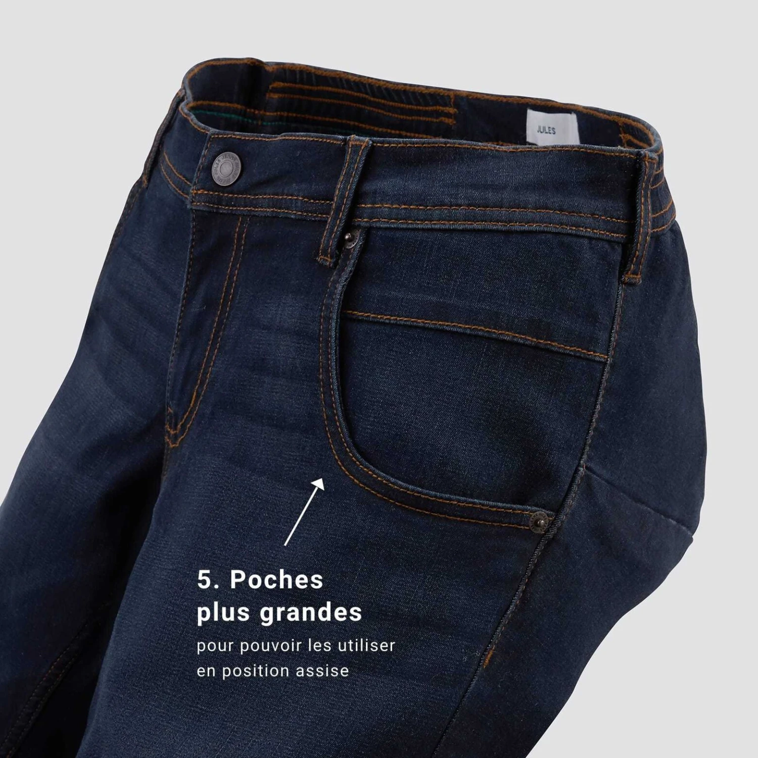 - Arrière du pantalon large et profond pour un confort optimum assis