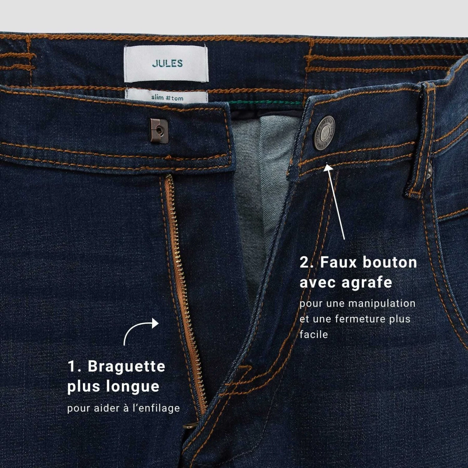 - Braguette plus longue