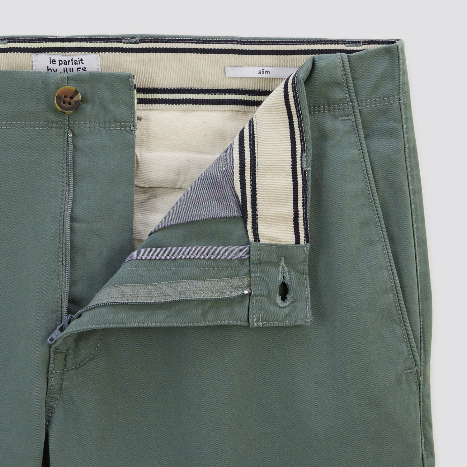 Ce pantalon chino est un produit éco conçu « Le Parfait by Jules ». Sa couleur intense est garantie plus longtemps et il contient de l’élasthanne pour un confort de mouvement optimal. Il peut se porter avec un t-shirt, un polo ou une chemise, c’est comme vous voulez !