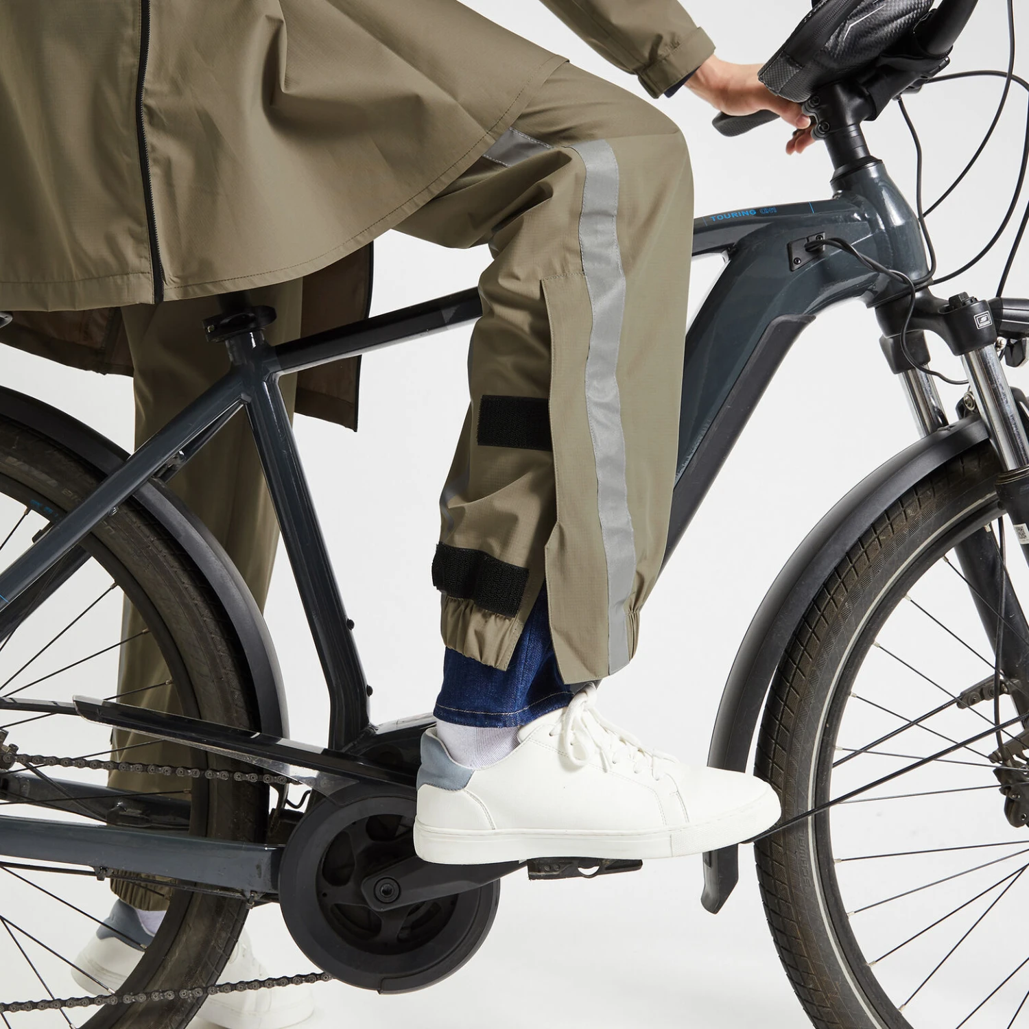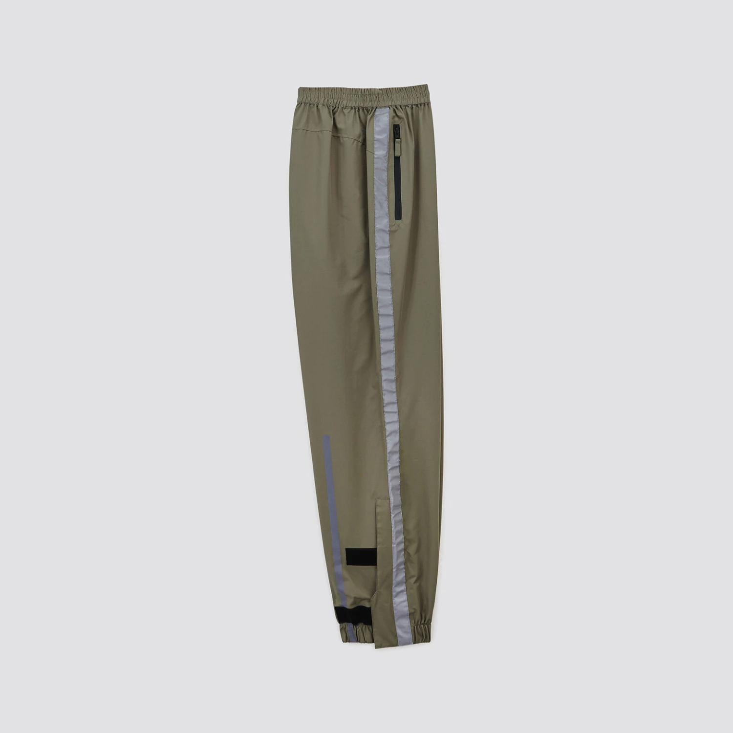 Ce pantalon mobilité douce est en matière imperméable, ainsi que les coutures, il possède 2 poches zippées avant, une taille et des bas de jambes élastiqués, de larges ouvertures bas de jambes pour un enfilage rapide sans enlever ses chaussures, des zips imperméables et des imprimés réfléchissants sur l’arrière des mollets.