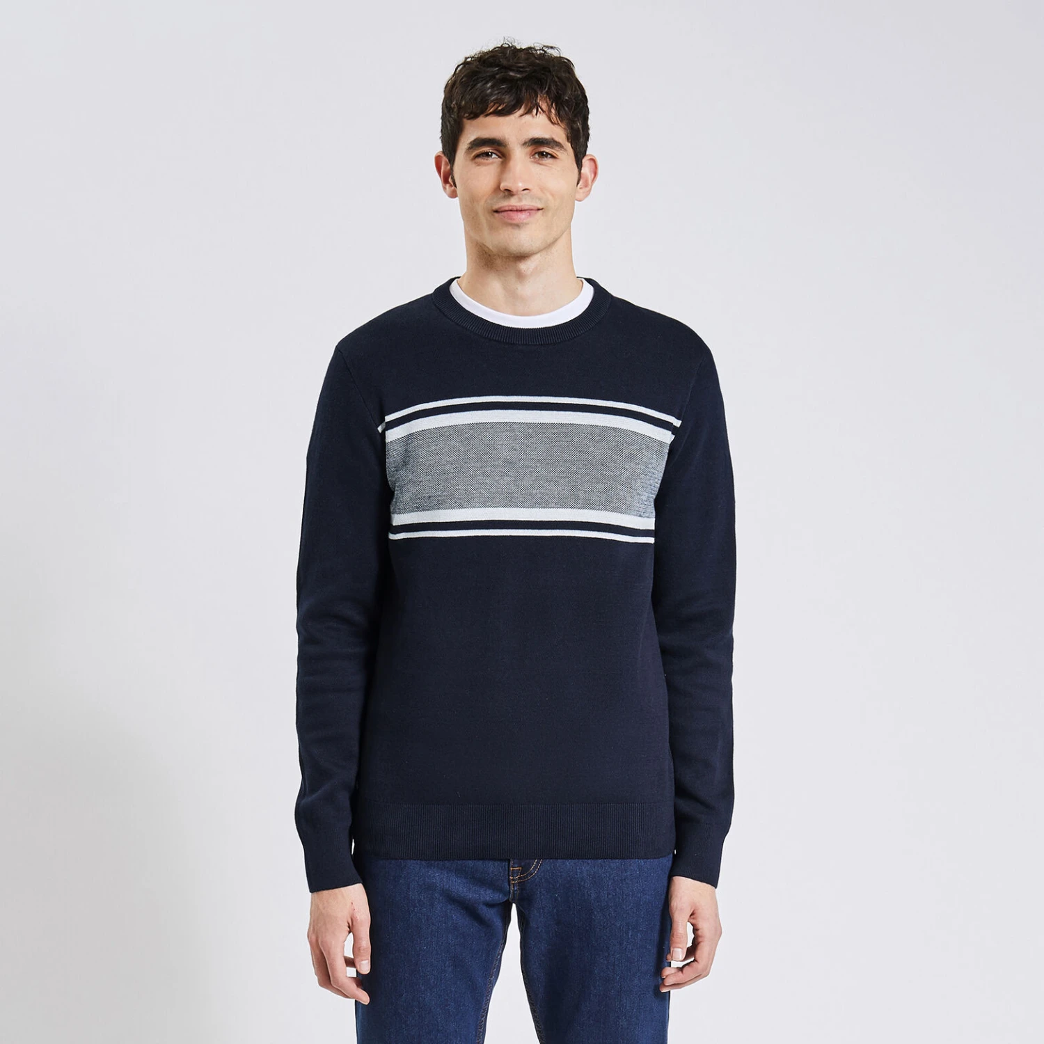Pour un style casual et décontracté, misez sur ce pull colorblock avec un jean ou un chino !