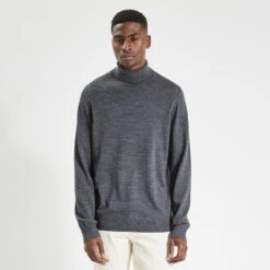 Ce pull uni col roulé est confectionné en laine mérinos, sa maille fine et douce en côtes possède une tenue parfaite ! Il peut se porter en pull ou sous une surchemise, au choix !