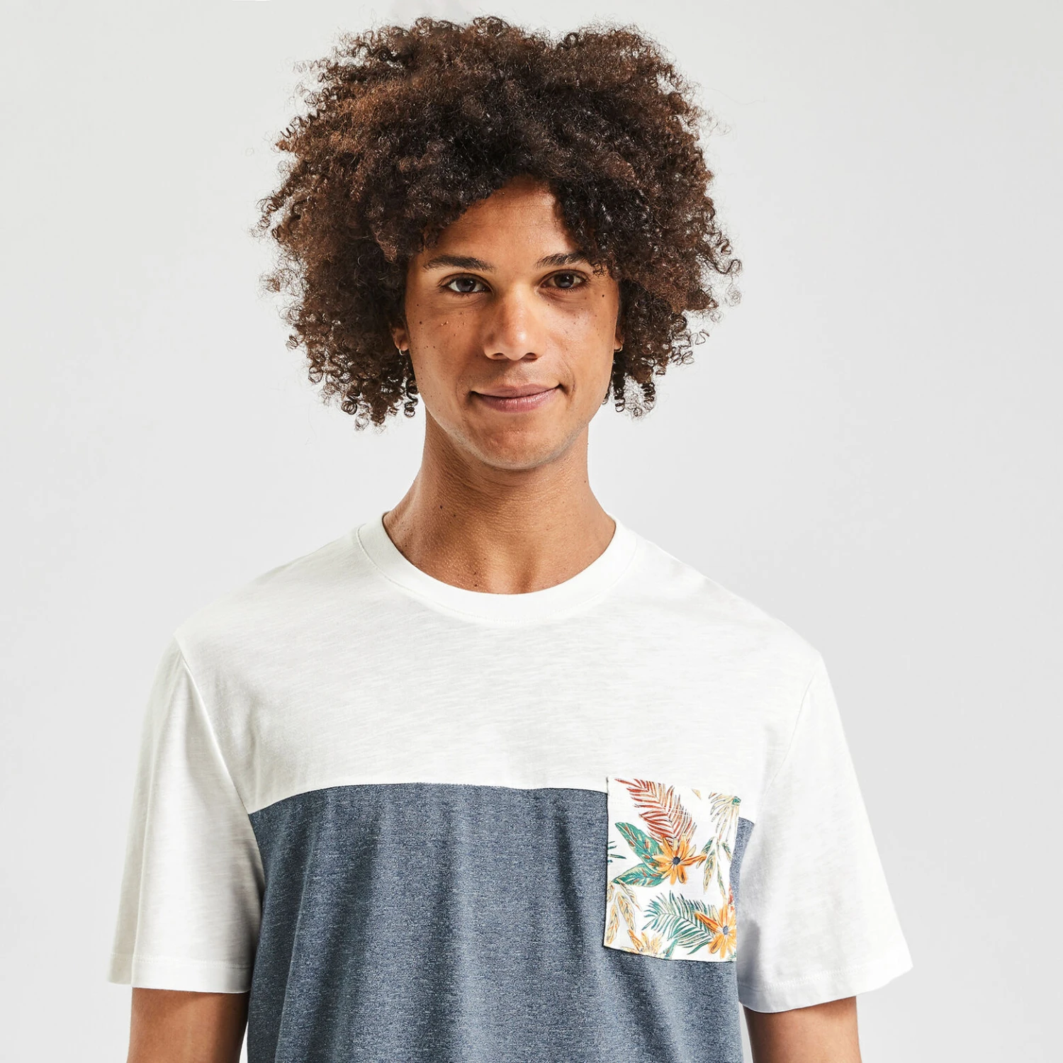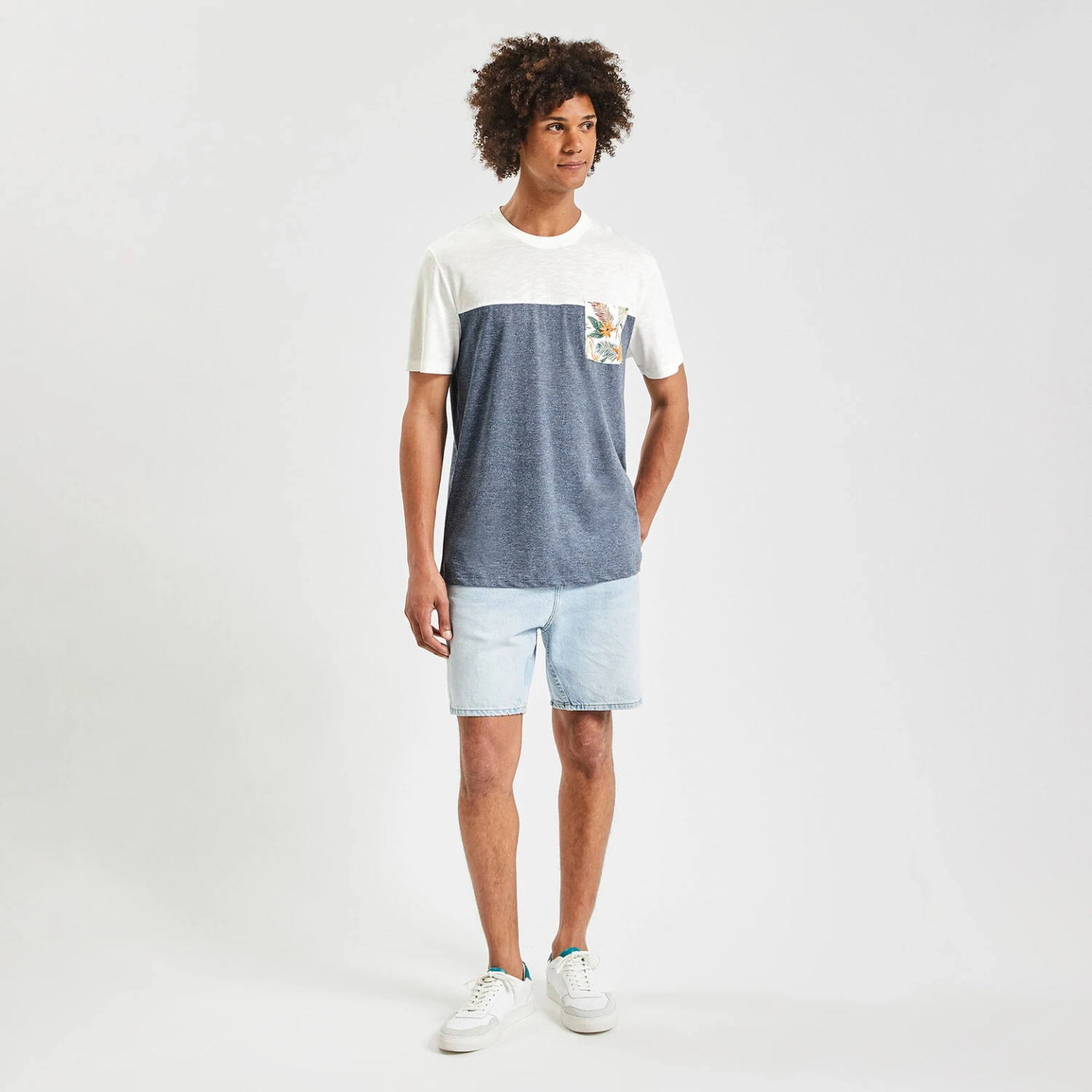 Confectionné dans un tissu doux et léger, ce t-shirt à manches courtes colorblock est un essentiel de l’été. Avec un short, un bermuda ou un pantalon, ce t-shirt se porte avec tous les styles. L’empiècement du haut est en matière flammée et l’empiècement du bas en matière fantaisie.