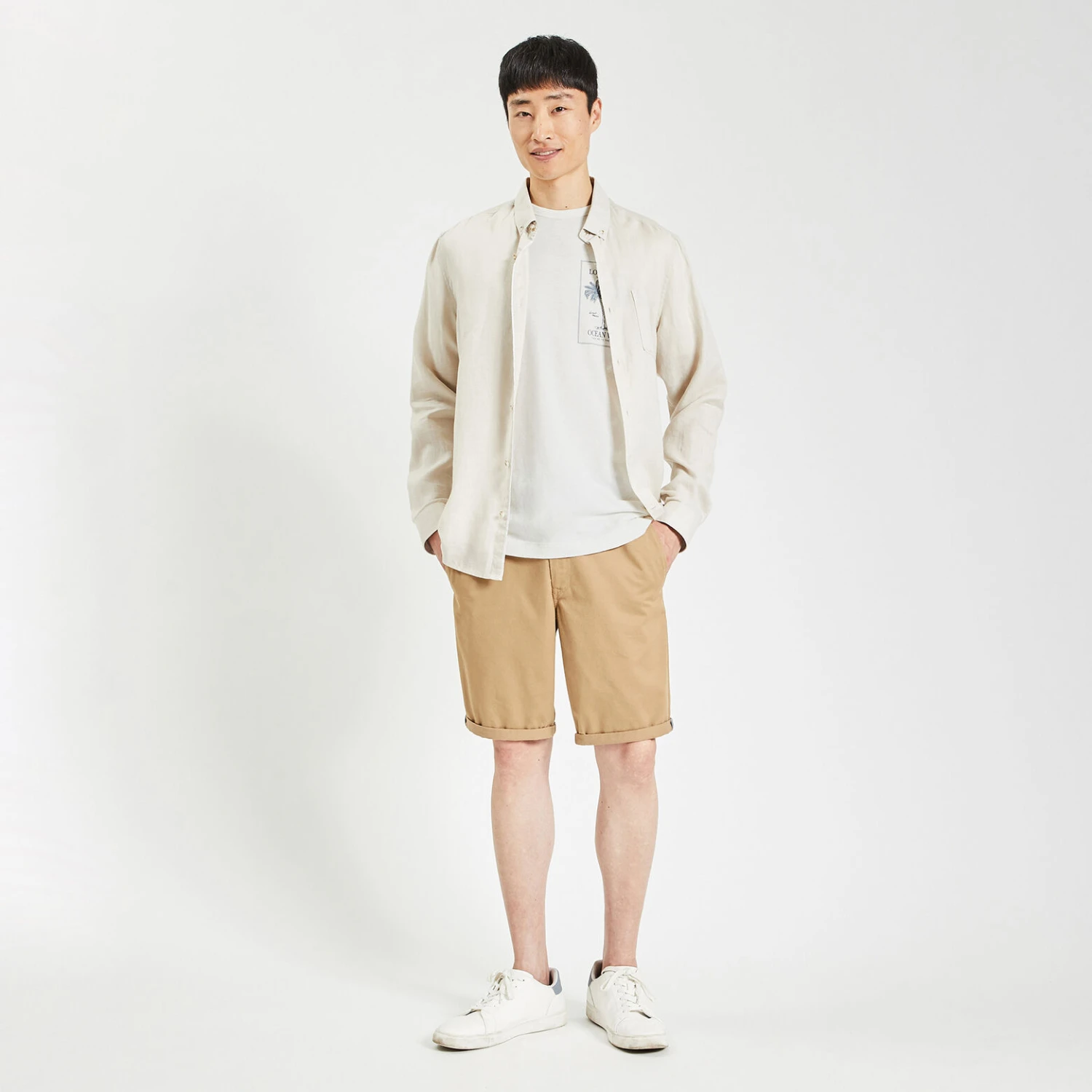 - Coupe regular, ni trop ajustée ni trop large avec un tombé droit